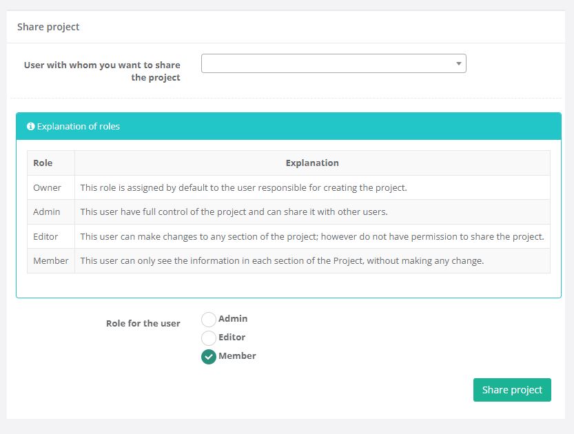 4. Confirm to share the project. The invited user will now have access according to the role you assigned.