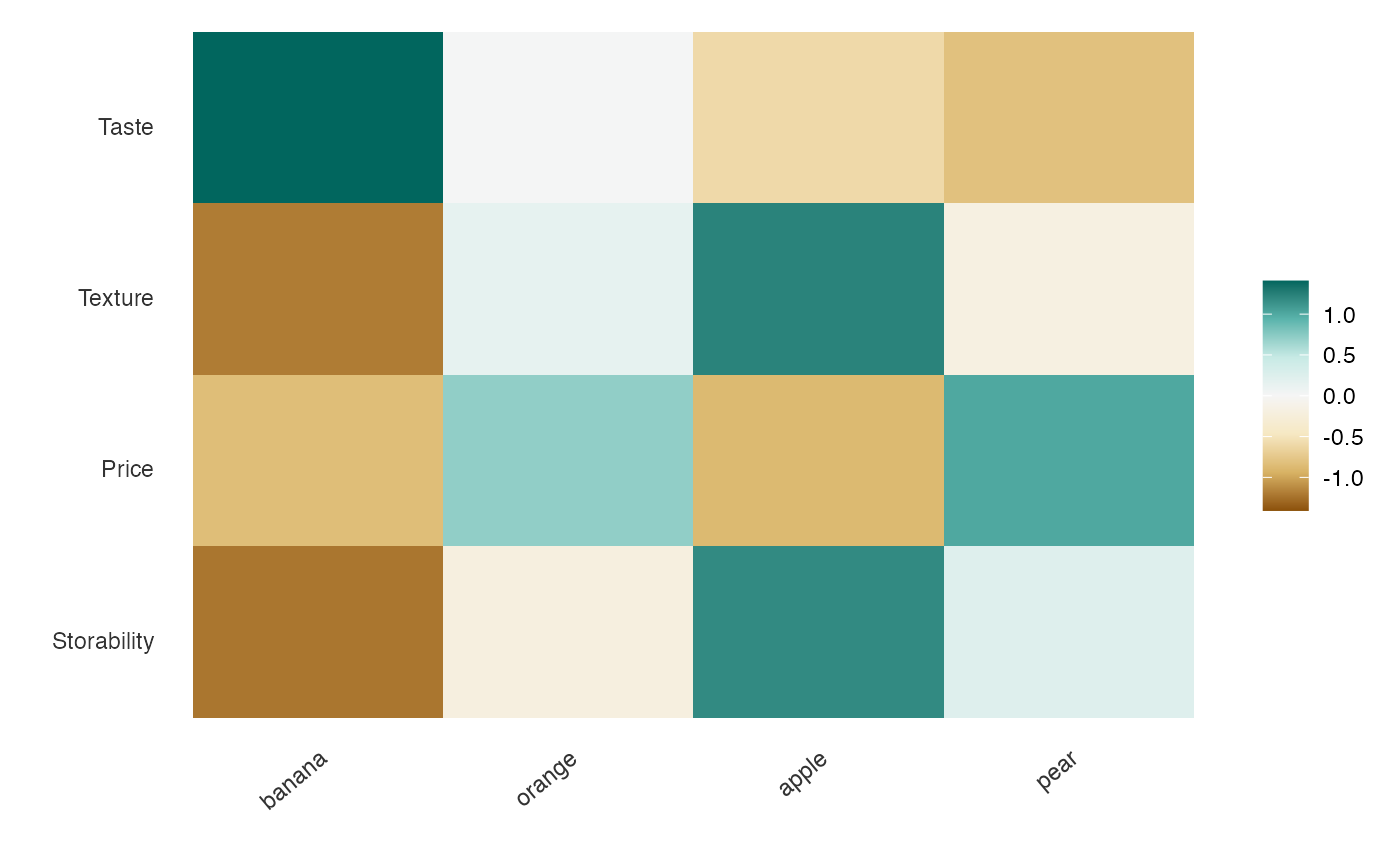 colnames(R2) = c("apple", "banana", "orange", "pear")