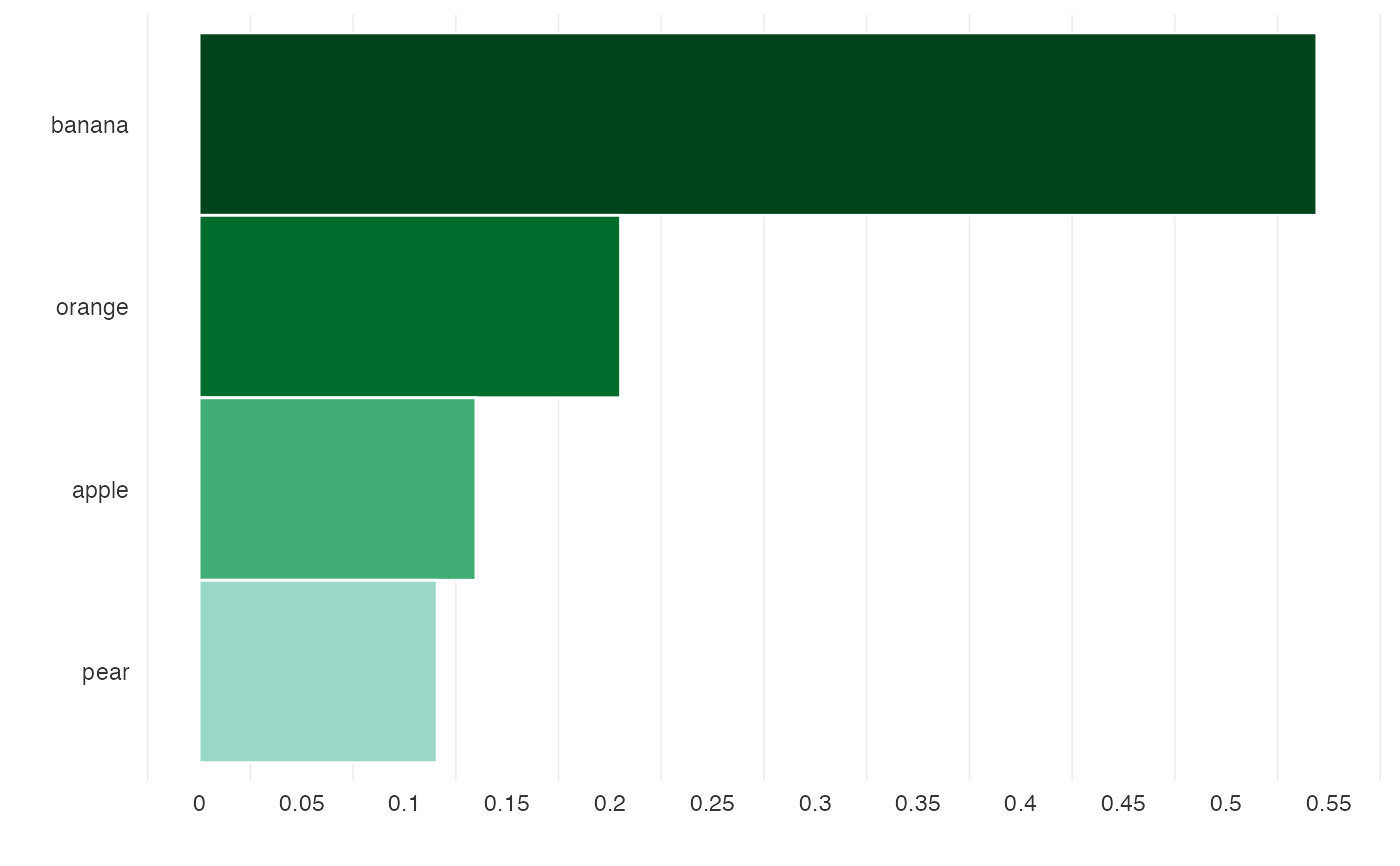 colnames(R4) = c("apple", "banana", "orange", "pear")